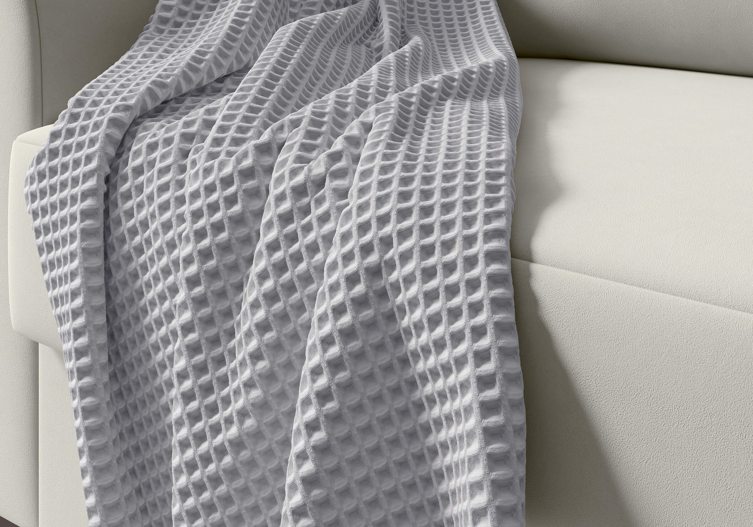 Плед Marko - мягкий вафельный плед, изготовлен из 100% натурального хлопка, который обладает хорошей воздухопроницаемостью. Глубокая рельефная ткань выглядит стильно и идеально вписывается в интерьер — будь то спальня в стиле минимализм, гостиная в скандинавском духе или уютный уголок с креслом и книжной полкой. Плед дарит ежедневное ощущение комфорта и теплой заботы благодаря хорошей плотности ткани, которая останется с вами на долго.